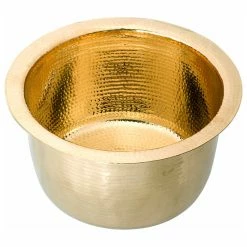 This round hand-hammered brass bar sink can be top-mounted or undermounted. Entertain in style as you make a statement with this show-stopping sink! This brass sink will endure while adding sparkle to bar area. Size may vary slightly due to the hand made nature of this sink. Slight variations may exist. Durable Make a focal point of a room with this unique sink. This sink features an overflow. Easy occasional polishing will keep it lustrous for a lifetime.