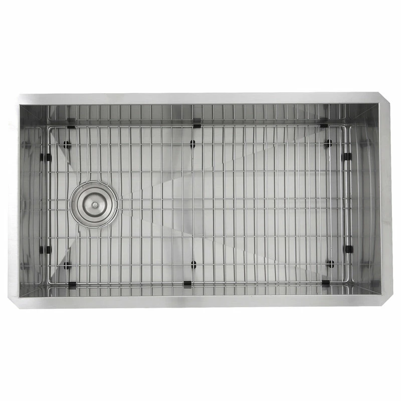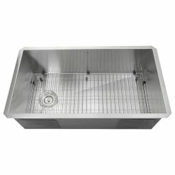 - This sink is crafted from 304 stainless steel in a lustrous satin finish.