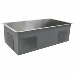 Space Centric Designed Undermount Pro Series Kitchen Sink. The location of these pipes being offset of will allow space under the sink for recycling bins and waste basket maximizing your under sink space. Normally this space is reduced by plumbing being centrally located. The design allows for the drain and the or garbage disposal to be mounted on the side leaving ample room underneath for slide out recycle and trash bins. At home in both traditional and modern kitchens, our Pro Series stainless sinks provide a lifetime of functionality. Fabricated from premium gauge T-304 stainless steel for maximum durability, the 10 ” deep basin easily accommodate dishes. Nantucket Sinks stainless steel sinks have thick rubber dampening pads to dampen sound. Our finishing process helps keep our stainless steel corrosion-resistant to rust and oxidation. The satin finish makes daily maintenance a simple rinse!