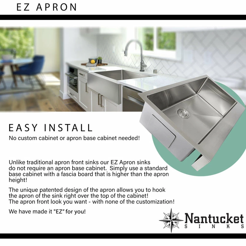 Hot Sale 😀 Nantucket Sinks EZApron 33-5.5 Farmhouse Stainless Sink 😀