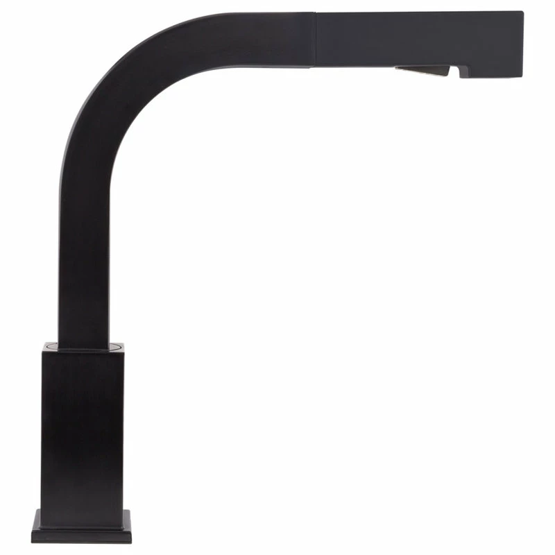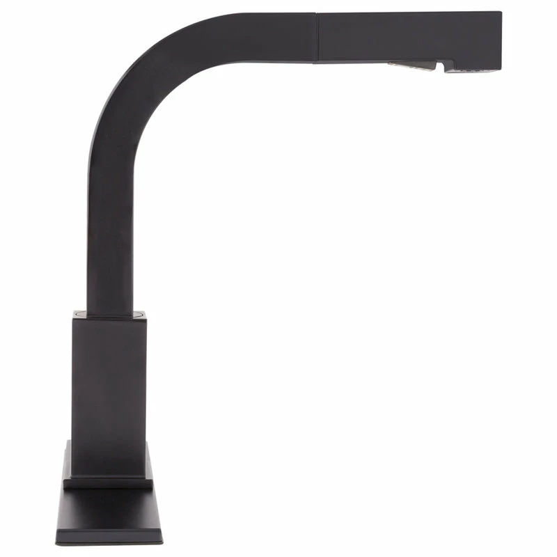 Invite ultra-modern styling into your kitchen space with the bold, minimalistic Arkitek kitchen faucet. Its geometric forms, squared corners, and straight lines are sure to draw attention while the refined aesthetic makes a bold statement. Enjoy versatility designed to accommodate tight backsplashes and smaller kitchen spaces.