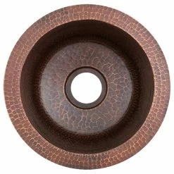 10″ Round Hammered Copper Bar Sink with a 2″ Drain Opening Features: