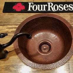 14″ Round Hammered Copper Prep Sink w/ 3.5″ Drain Opening Features: