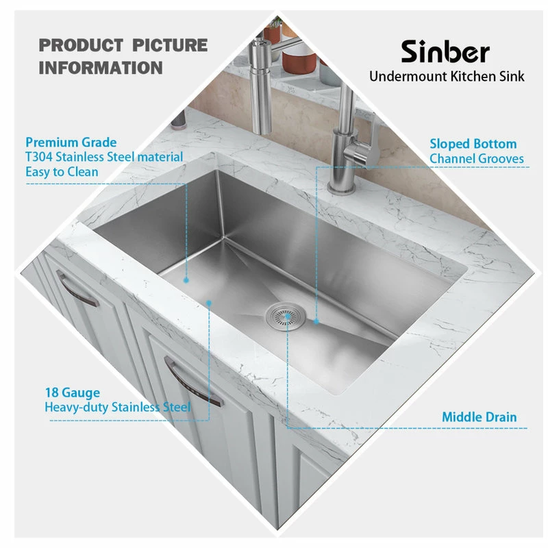 Coupon ๐ Sinber Single Bowl 304 Stainless Steel Kitchen Sink, 30″x18″, Undermount ๐
