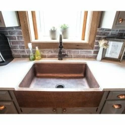 - A 36-inch minimum cabinet base is recommended to support the Adams copper farmhouse kitchen sink.