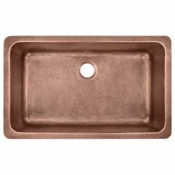 The Adams 36″ single bowl copper farmhouse kitchen sink is one of our most popular kitchen sinks for many reasons.The Adams 36″ copper sink represents an incredible value while adding a luxurious and unique focal point to your kitchen design. Handcrafted from pure, solid 16-gauge copper by skilled craftsmen.The apron wraps 2.5″ on each side allowing for flexible undermount or drop-in installations. The extra-large 36″ single bowl designs offers plenty of space for any kitchen and is guaranteed to be the highlight of your kitchen.The Adams kitchen sink is also protected by a Lifetime Warranty.