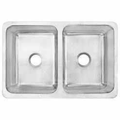 The Percy 32″ farmhouse-style, double bowl Crafted Stainless Steel kitchen sink offers a long-awaited update to a classic material. Featuring a hand-hammered, uniquely crafted finish, the Percy offers the beloved look of stainless steel with an upscale style. The ample double-bowl layout maximizes the use of the sink’s surface area by providing separate spaces for rinsing, scrubbing, soaking or drying dishes, while modern sound-dampening technology ensures the Percy remains a visibly stunning, yet quiet, kitchen centerpiece.