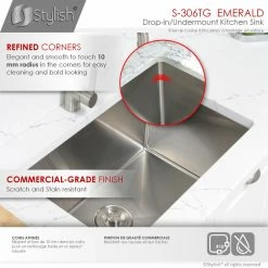 - PERFECT CORNERS: All welds and corners are perfectly blended through an automated machine buffing system and carefully hand polished for a luxurious finish. This undermount single bowl kitchen sink has elegant and smooth to touch 10mm radius in the corners for a bold look and at the same time add functionality allowing to clean the kitchen sink very easily.
