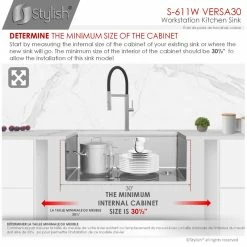 Stylish® handmade stainless steel sinks combine functionality, quality and affordability. Made of surgical grade SUS 304 stainless steel in 16 Gauge, with an optimized 18pct Chromium and 10pct Nickel content to provide excellent strength and hardness. The specially chosen satin finish will hide water spots and maintain a uniform patina finish as the sink ages. The extra-deep basin accommodates pots and pans easily, but it also hides dirty dishes in the sink basin and under the countertop line. The tight-10mm radius corners are perfectly blended through an automated machine buffing system and careful hand polished, for a luxurious finish. This sink comes with one bottom grid, bamboo cutting board, drying rack and colander.