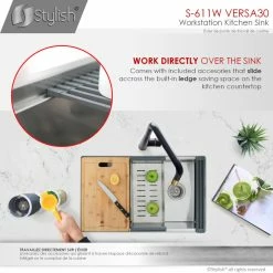 - Stylish Versa series offer accessories that convert your sink into a prep workstation adding functionality and optimizing space utilization.