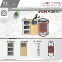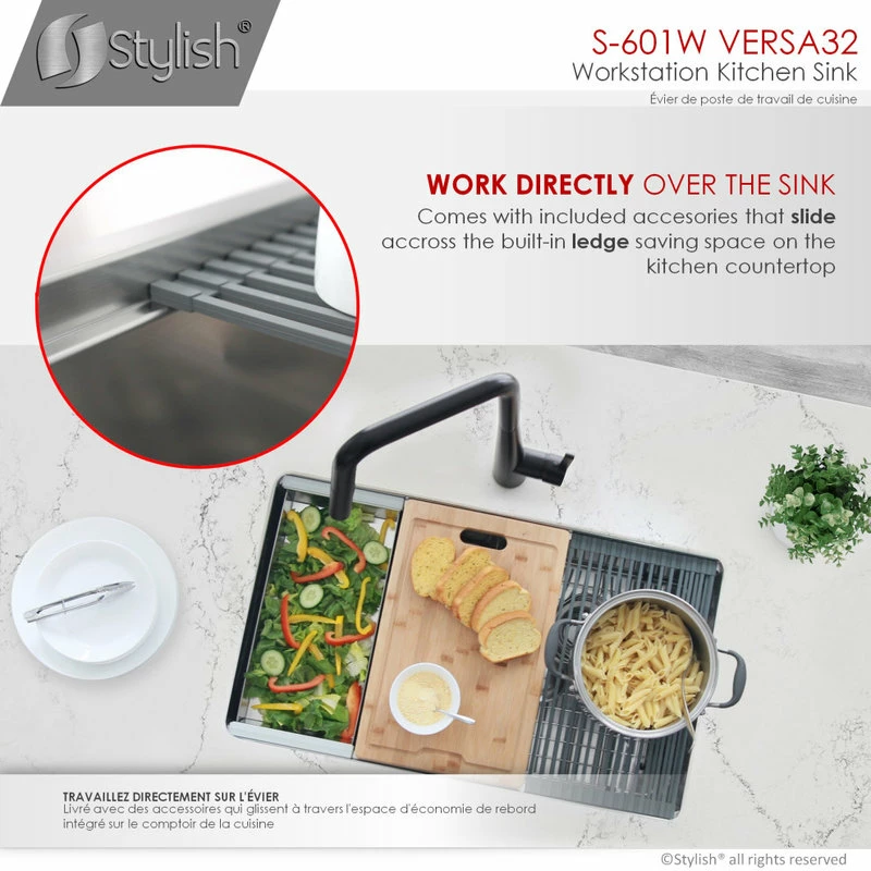 - Stylish VERSA ledge sink series offer accessories that convert your sink into a prep workstation adding functionality and optimizing space utilization.