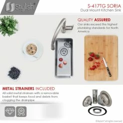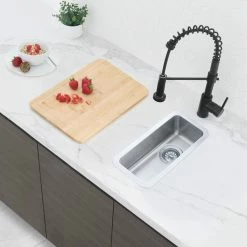 This modern kitchen sink is made using premium grade 18 gauge T-304 stainless steel that is UV, chip, stain, tarnish, and heat resistant. 25mm radius corners allow for easy cleaning and for easy cutting of the stone countertop. The specially chosen satin finish will hide water spots and maintain a uniform patina finish as the sink ages. This stainless steel undermount or drop-in bar/prep sink is surrounded by sound absorbing pads on all sides. These sound guard pads significantly reduce the sound generated by water falling on it and also protect the kitchen cabinet from condensation. This stainless steel bar/prep sink can be installed undermount or drop-in, it comes with installation instructions mounting clips and a standard strainer. The standard strainer is perfect to protect the drain from clogging, since it catches food debris and scraps.
