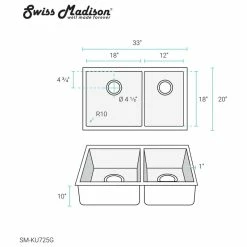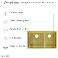 The Rivage Stainless Steel Dual Basin Undermount Sink is an enduring selection for any kitchen application. Its under-mounted design results in a smooth look and a flush mounting with any countertop material. A Rear offset drain allows for maximum undersink storage utilization.