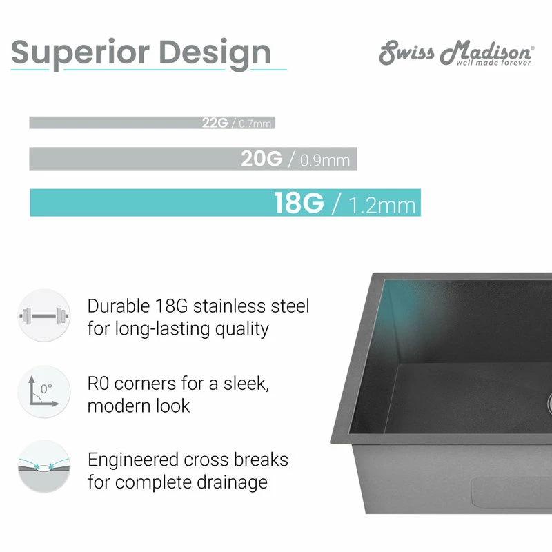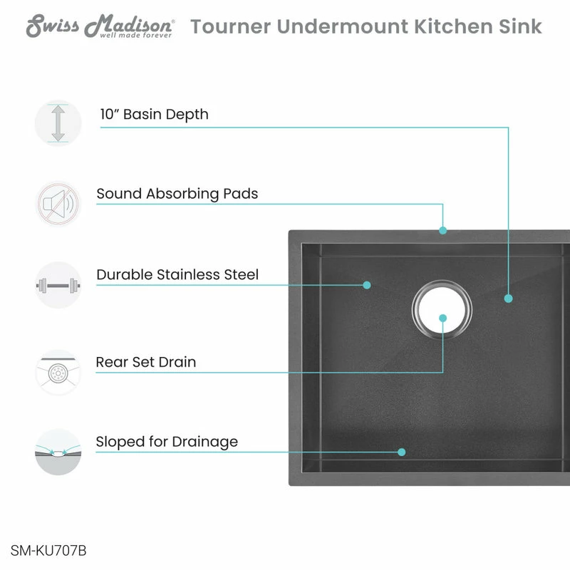 The Tourner Undermount Kitchen Sink is a stylish single basin sink with numerous finish options making it a perfect addition to any kitchen setting. Built with corrosion, rust and scratch-resistant stainless steel, this sleek and modern sink was built to withstand heavy use and high temperatures. Additionally, the sink has a deep spacious bowl, allowing for uninterrupted washing.