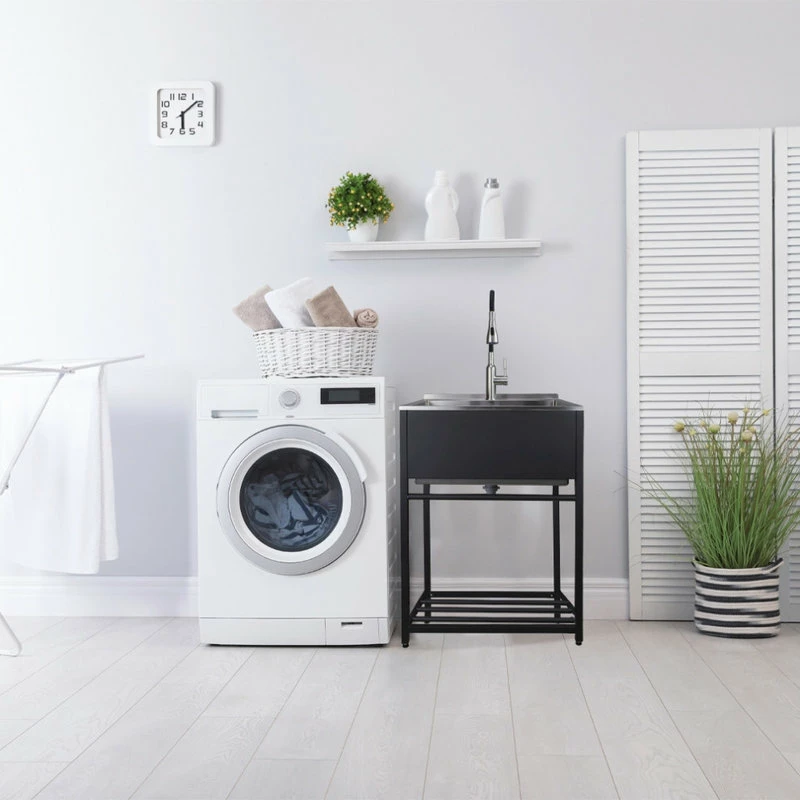 Deals ๐ฅ Transolid 25″x22″ Stainless Steel Laundry Sink With Wash Stand, Matte Black ๐