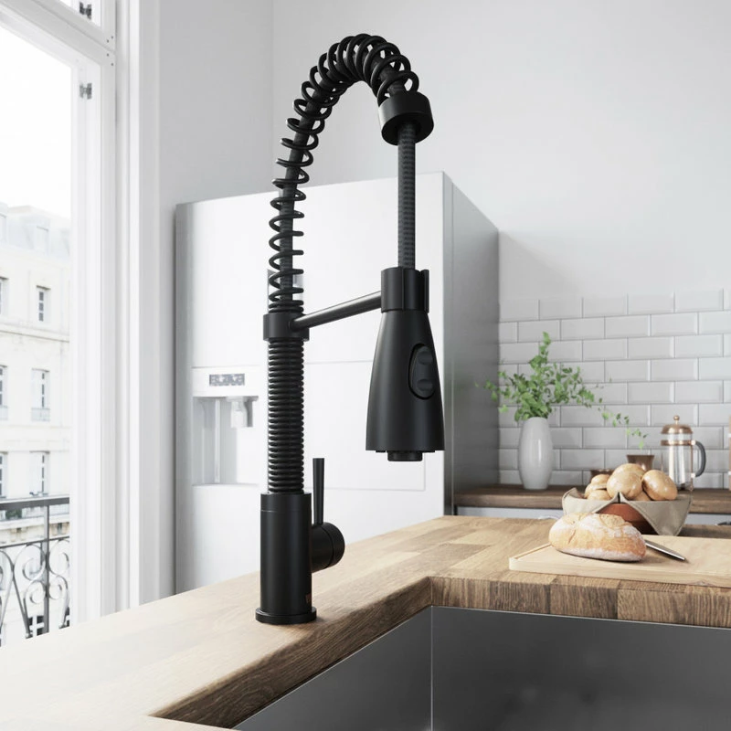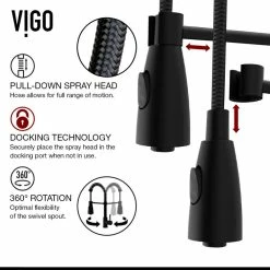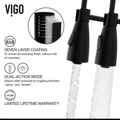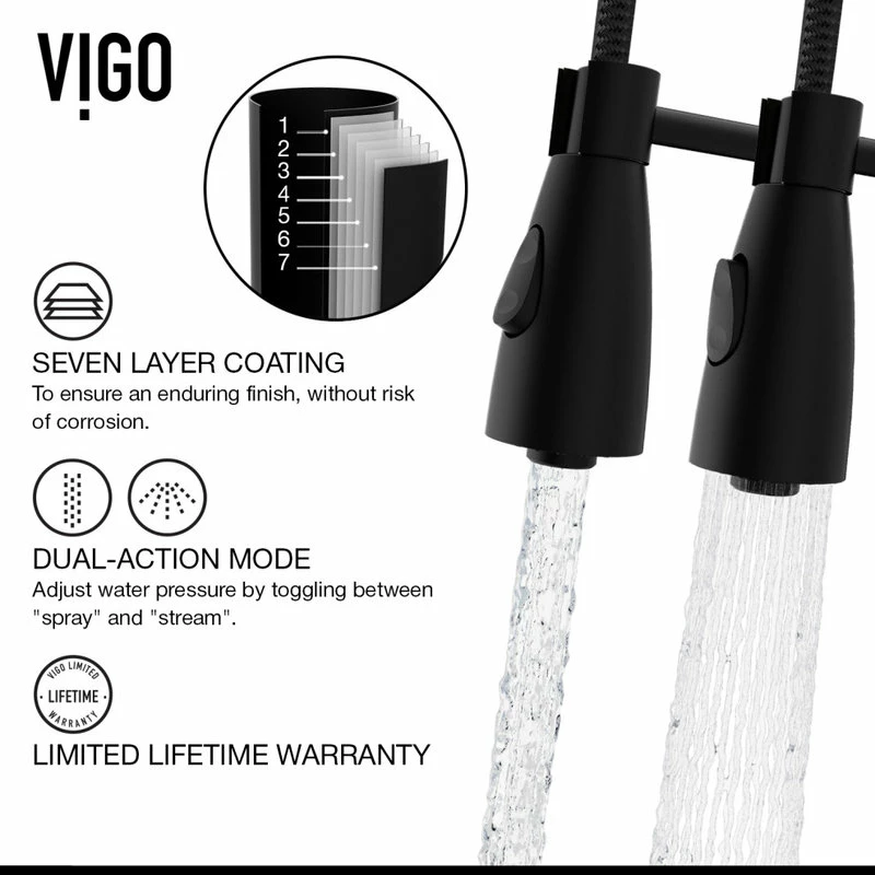 Engineering excellence meets creative hardware in the VIGO Brant Pull-Down Spray Kitchen Faucet. The dual-function, pull-down spray head allows for either a powerful spray or an aerated flow, making it exceptionally versatile for any use. The pull-down extendable hose reaches 30 inches long, keeping the faucet easy to use and maneuver. The spray head has 360-degree swivel capabilities for all-around ease of use. This faucet pairs well with any undermount or farmhouse kitchen sink. With top-of-the-line hardware and backed by an exceptional warranty, the Brant is the epitome of simplicity done with style.