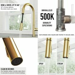 - RETRACTABLE SPOUT: Nylon braided house extends up to 25 inches for optimal maneuverability in the kitchen.