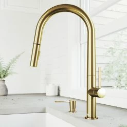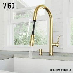 Smooth texture and a sleek silhouette define the Greenwich by VIGO. VIGO’s 7-layer premium hardware finish adds elegance to flawless curves and a dynamic high arch. This single handle kitchen faucet boasts a minimalist design that compliments any kitchen style. Engineered with multifunctional features, this single handle kitchen faucet maximizes the productivity of your kitchen. The pull-down spray allows you to switch between an aerated flow of water and a powerful stream that assists in cooking and cleaning. The Greenwich instantly transforms the style and functionality of your kitchen with easy DIY installation.