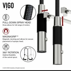 VIGO presents the Livingston magnetic kitchen faucet. Its integrated magnetic catch holds the spray head in place when it’s not used. The dual-action spray head with a 1.8 GPM flow rate conserves water without compromising performance. Livingston’s spray head supports a 360ห swivel spout that can be conveniently used around any kitchen sink. The solid brass construction and a premium 7-layer plated coating resists wear and tear throughout its lifetime, making it a part of your home for years to come.