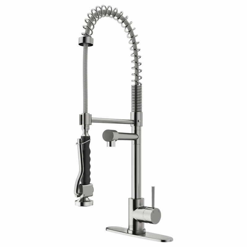 Taking inspiration from commercial kitchens, The Zurich by VIGO delivers modern design and functionality. This kitchen faucet provides more power for cooking and cleaning. VIGO’s premium 7-layer finish adds an elegant touch to its industrial design. Loaded with features, The Zurich is engineered with an extendable pull-down sprayer head and a separate pot filler. Its solid brass construction delivers a lifetime of lasting durability while the single handle lever ensures seamless operation. Beautiful as it is practical, The Zurich is a must-have fixture for your home.